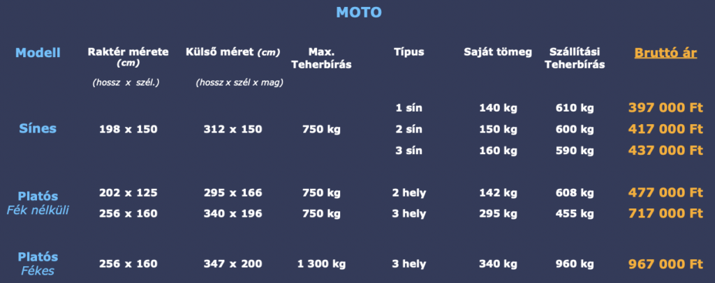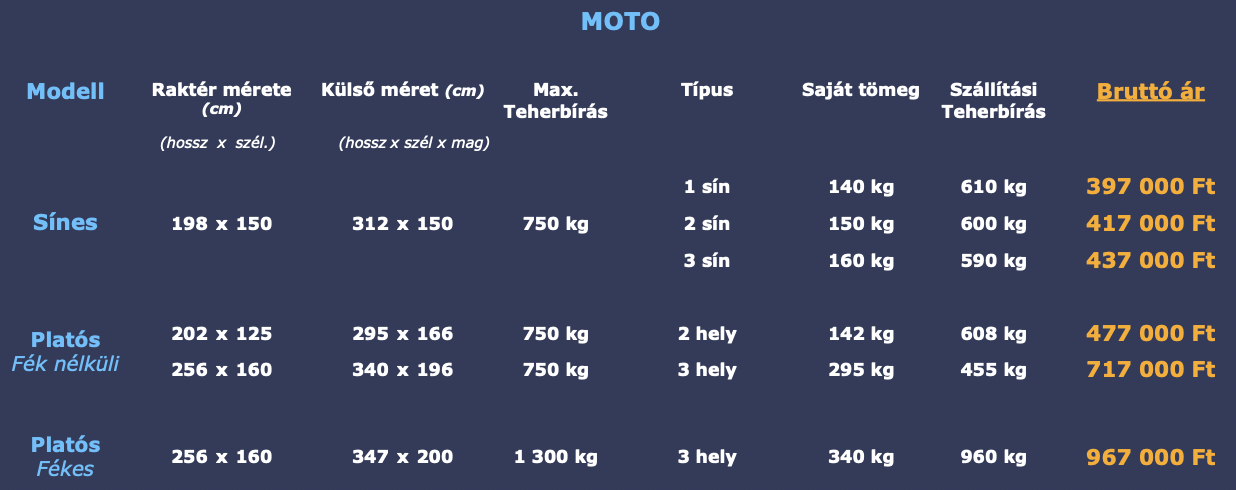 Az Alfa MOTO kifejezetten motorok szállítására tervezett utánfutó. Minden verzióhoz jár feljáró rámpa, mely benne van az alapárban!